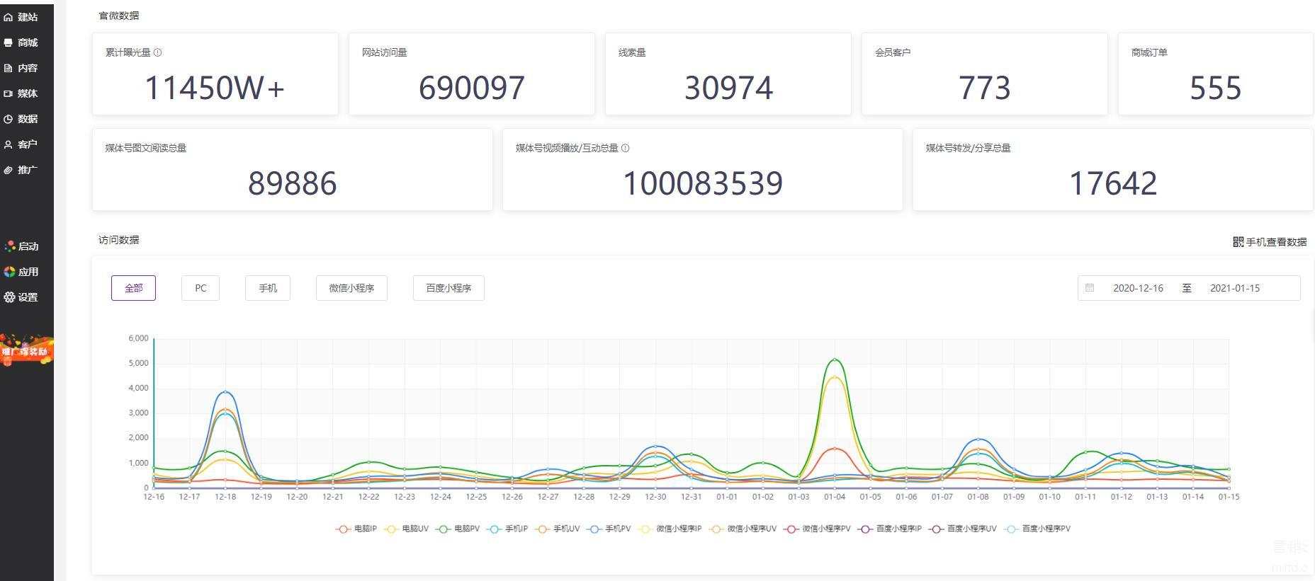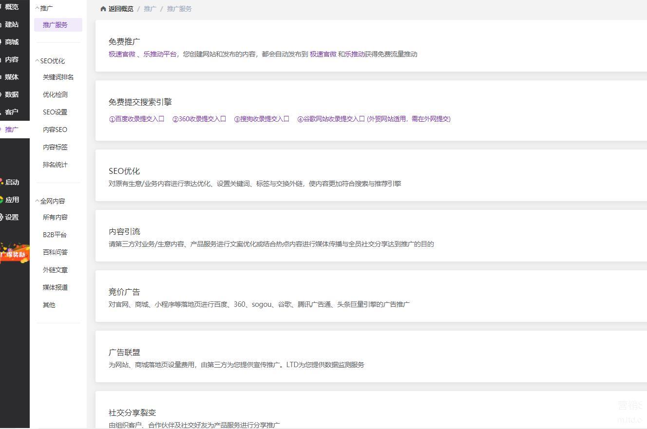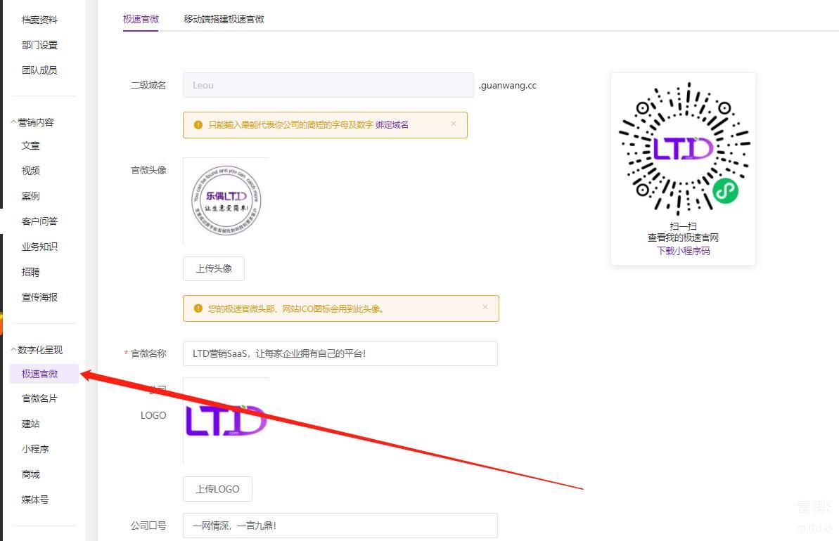 在通过LTD营销SaaS搭建好独立站后,企业可以通过官微中心生成的极速官微小程序以及乐推动平台进行免费的推广。