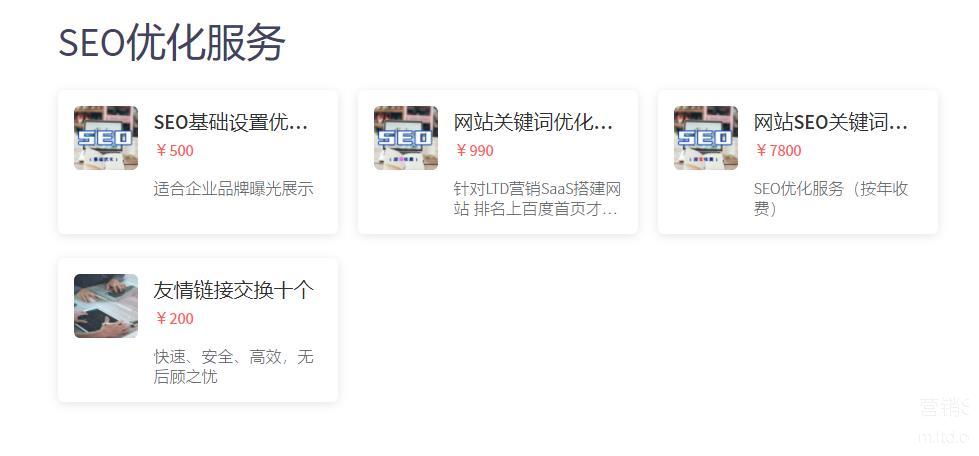 除此之外,您也可以直接在LTD营销SaaS中购买SEO优化服务与交换友链服务,由LTD帮您进行排名优化,您不用再时刻操心网站的优化情况,让生意变得更简单!