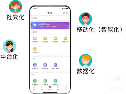 让我们来了解下社交营销网站的几个特点:社交化、移动化(智能化)、中台化、数据化。