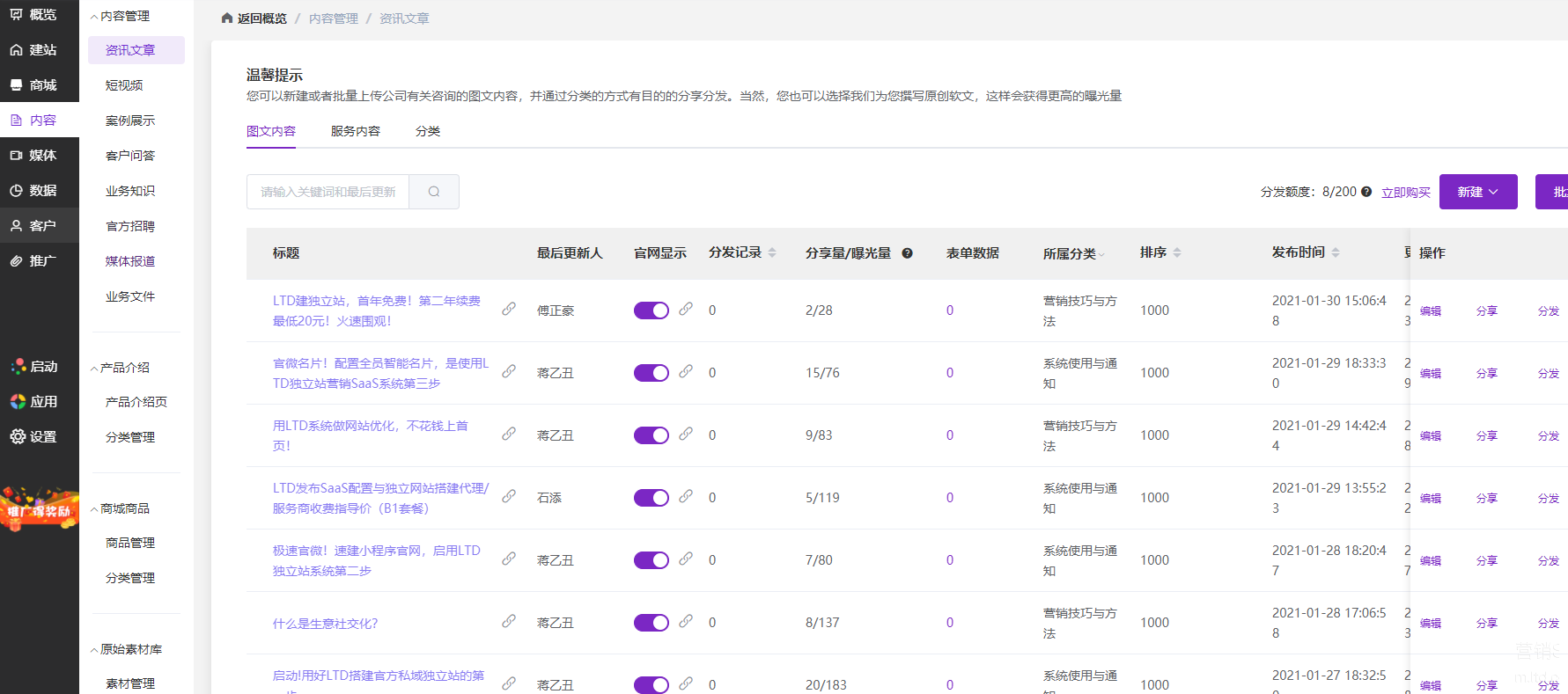 主要是营销物料的分发,分发的渠道有: