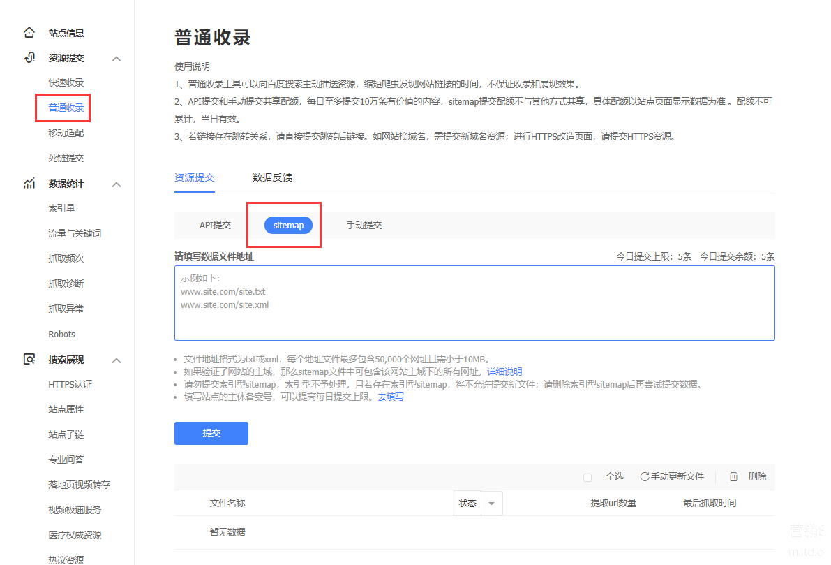 2、提交网站地图sitemap