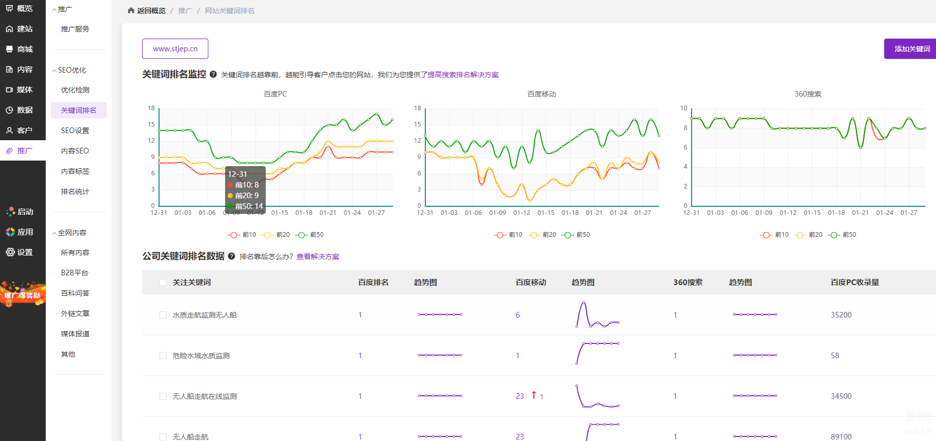 十、检测关键词排名情况