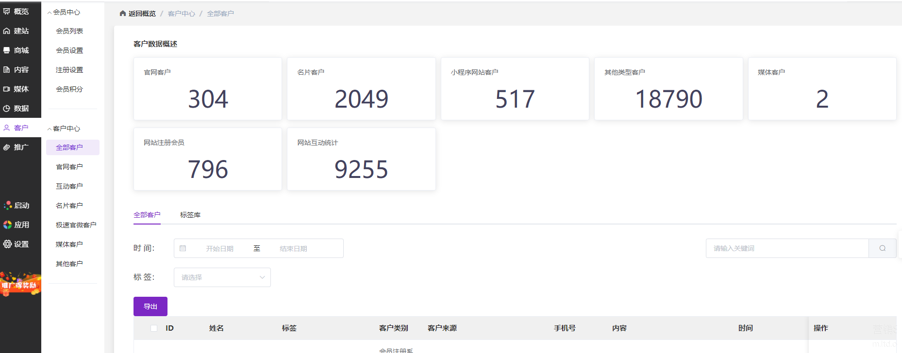 官微中心-【客户】-【全部客户】销售及时跟进获客线索,促进线索转化