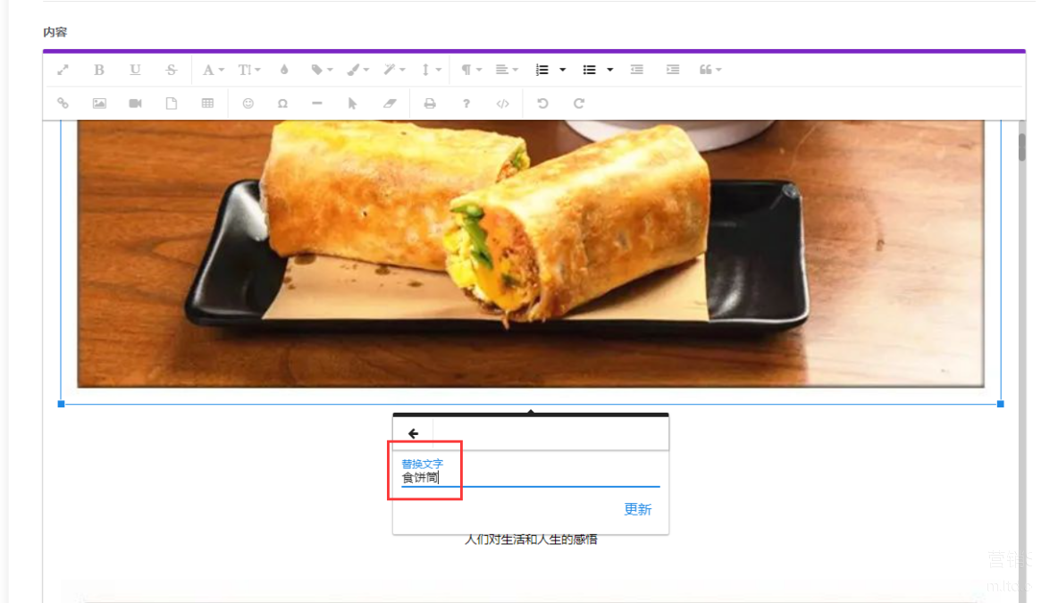 文章图片选中,选择替换文字:添加相关长尾关键词,点击更新即可