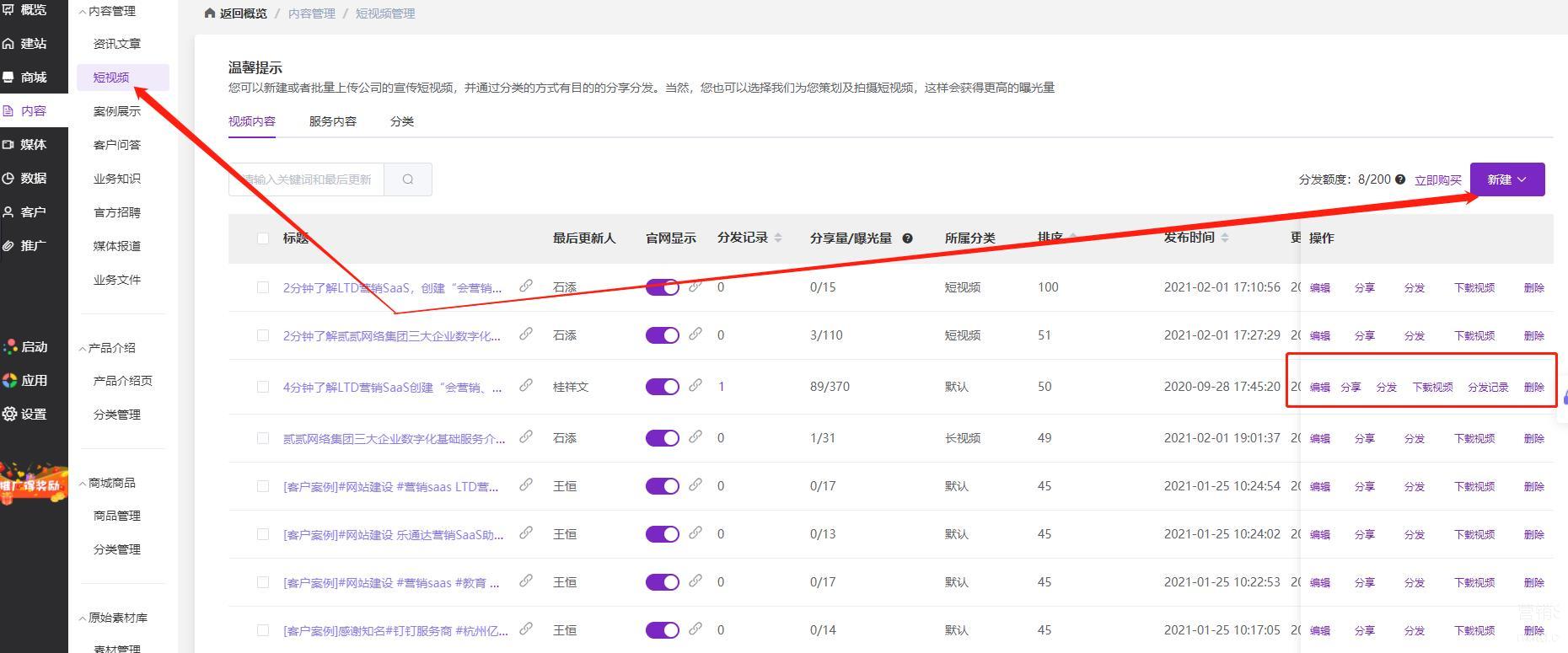 视频内容的上传十分便捷,选择“官微中心-内容-短视频”,选择新建视频内容即可;