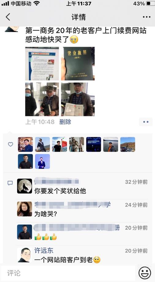 老客户二十年来的不离不弃让我们贰贰网络全体员工都感到十分感动,这也是对于贰贰能力的肯定!