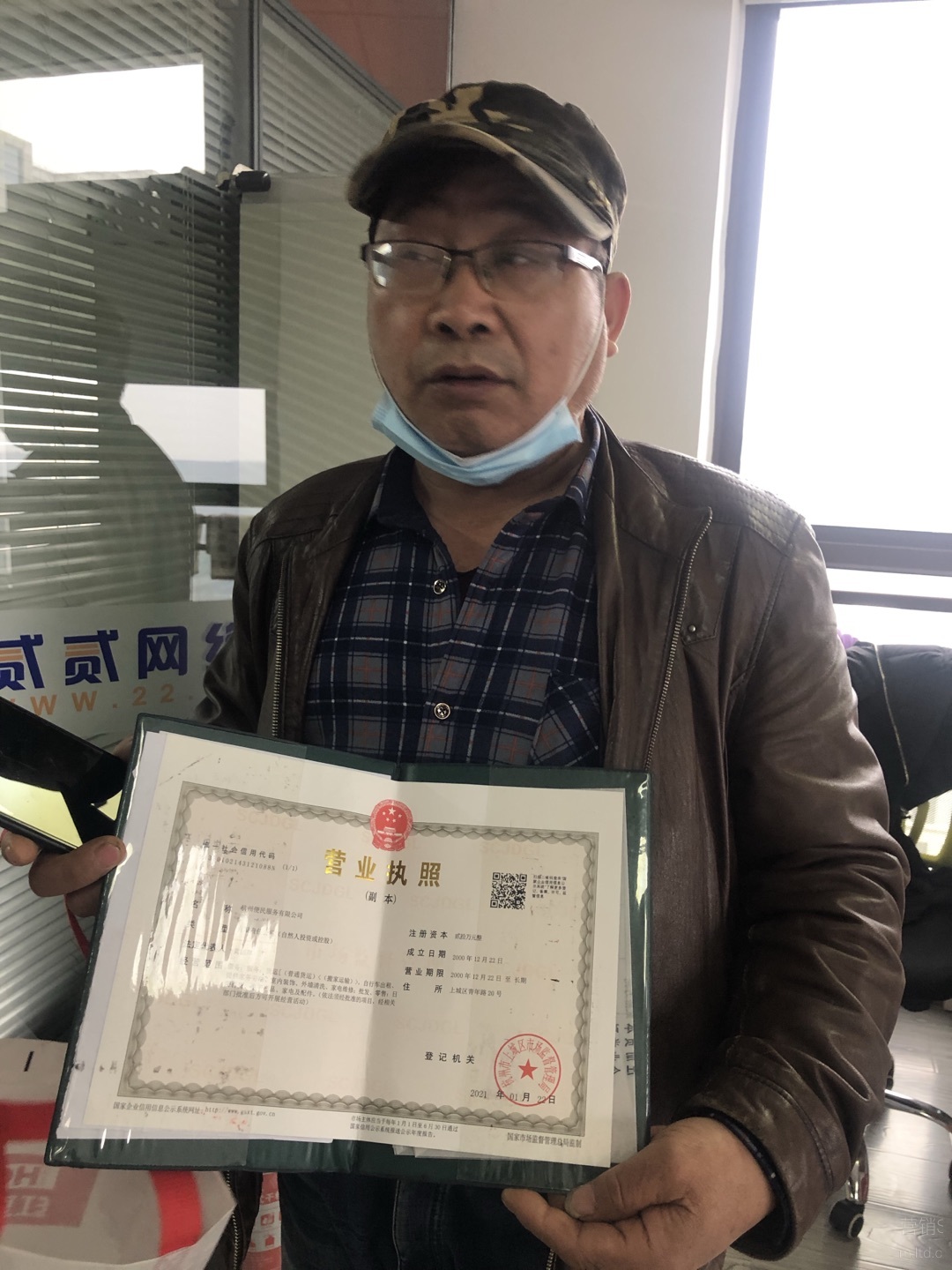 这位老客户是杭州便民服务有限公司的负责人,在交流过程中,他还向我们展示了自己的营业执照,从2000年开始成立后便选择了当时还是第一商务的贰贰网络(集团)。