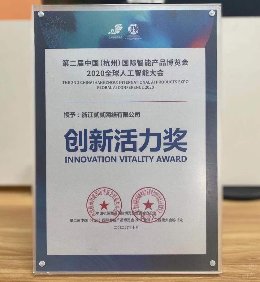 就在前几天,杭州西湖国际博览会(以下简称西博会)为贰贰网络集团(以下简称贰贰网络)授予了“创新活力奖”,这个奖项来源于第二届中国国际智能产品博览会。