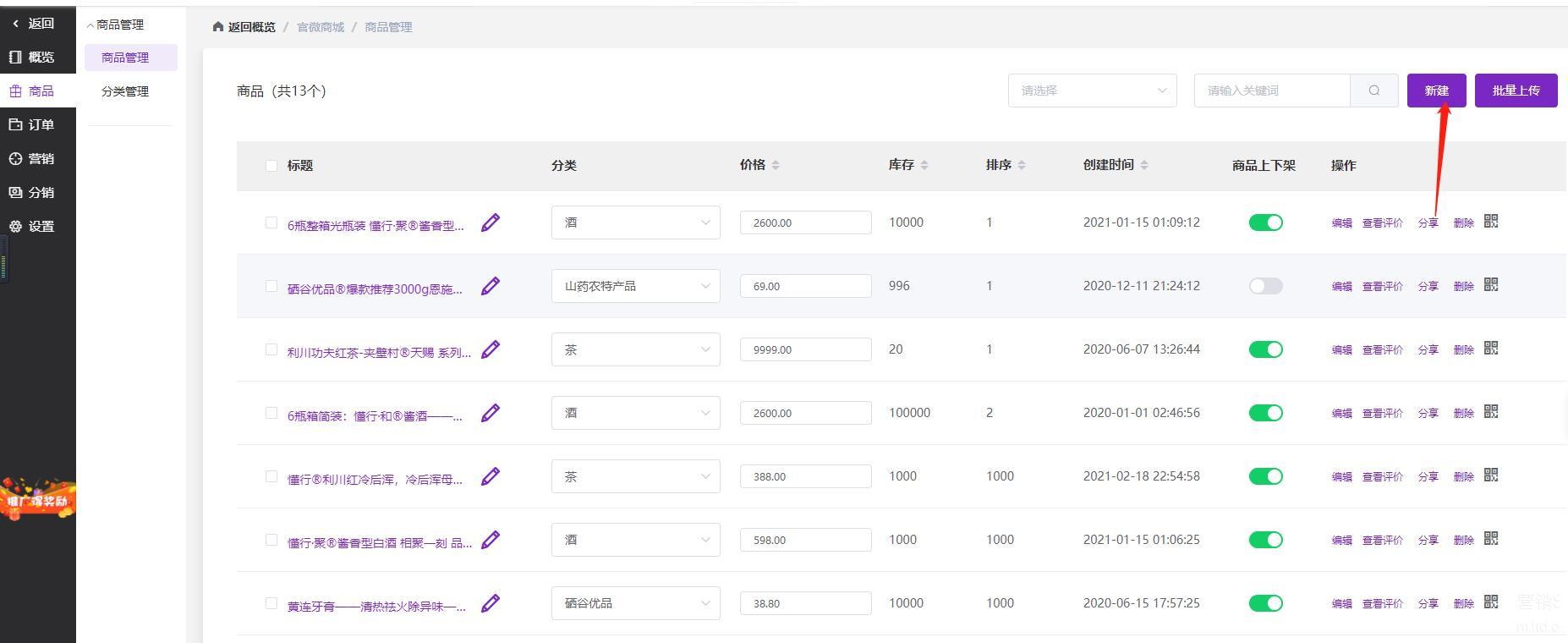 接着只需要将商品信息录入到系统中就可以了,选择左侧功能栏的“商城-商品-商品管理”,即可直接在商城中添加商品信息。