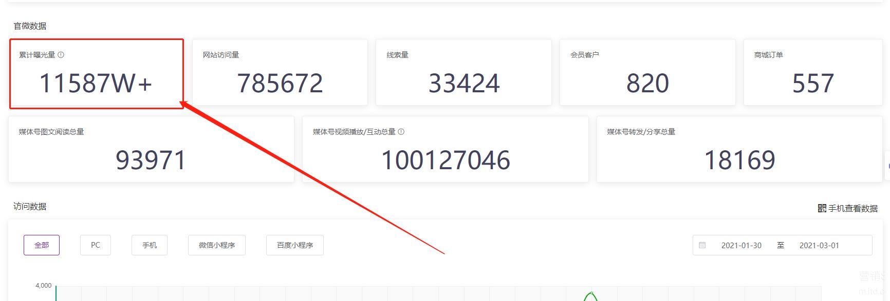 而喜报之二就是这位客户的网站曝光量已经突破一亿大关!