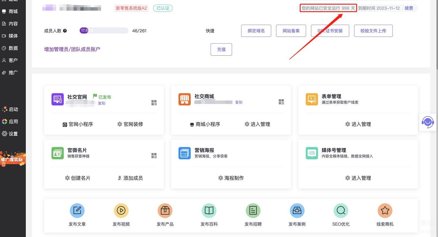 其一就是这位用户使用LTD营销SaaS运行网站正式突破999天!