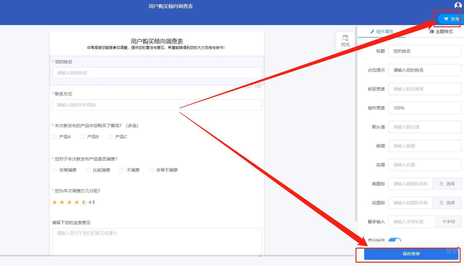 最后不要忘记点击右下方的“保存表单”和右上方的“发布”选项!