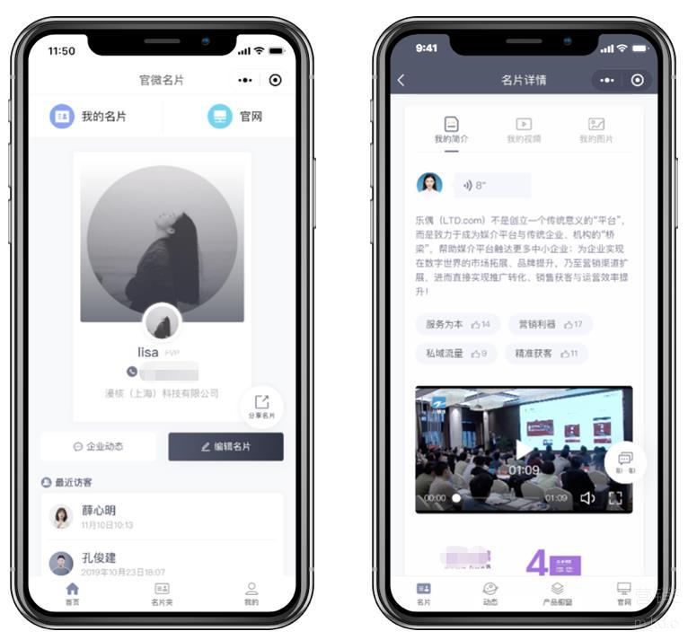 于是,电子名片功能应运而生,而LTD营销SaaS提供的官微名片功能可以让每一位员工都拥有自己的电子名片,不仅随时随地达成商务社交,还能助企实现智能获客!