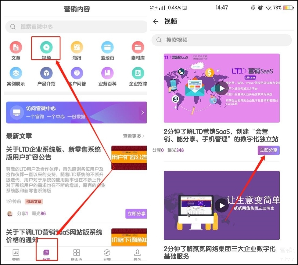 在官微中心后台中可以直接下载视频,方便推广人员随时进行视频分享,另外手机官微中心APP中也可以随时分享视频。