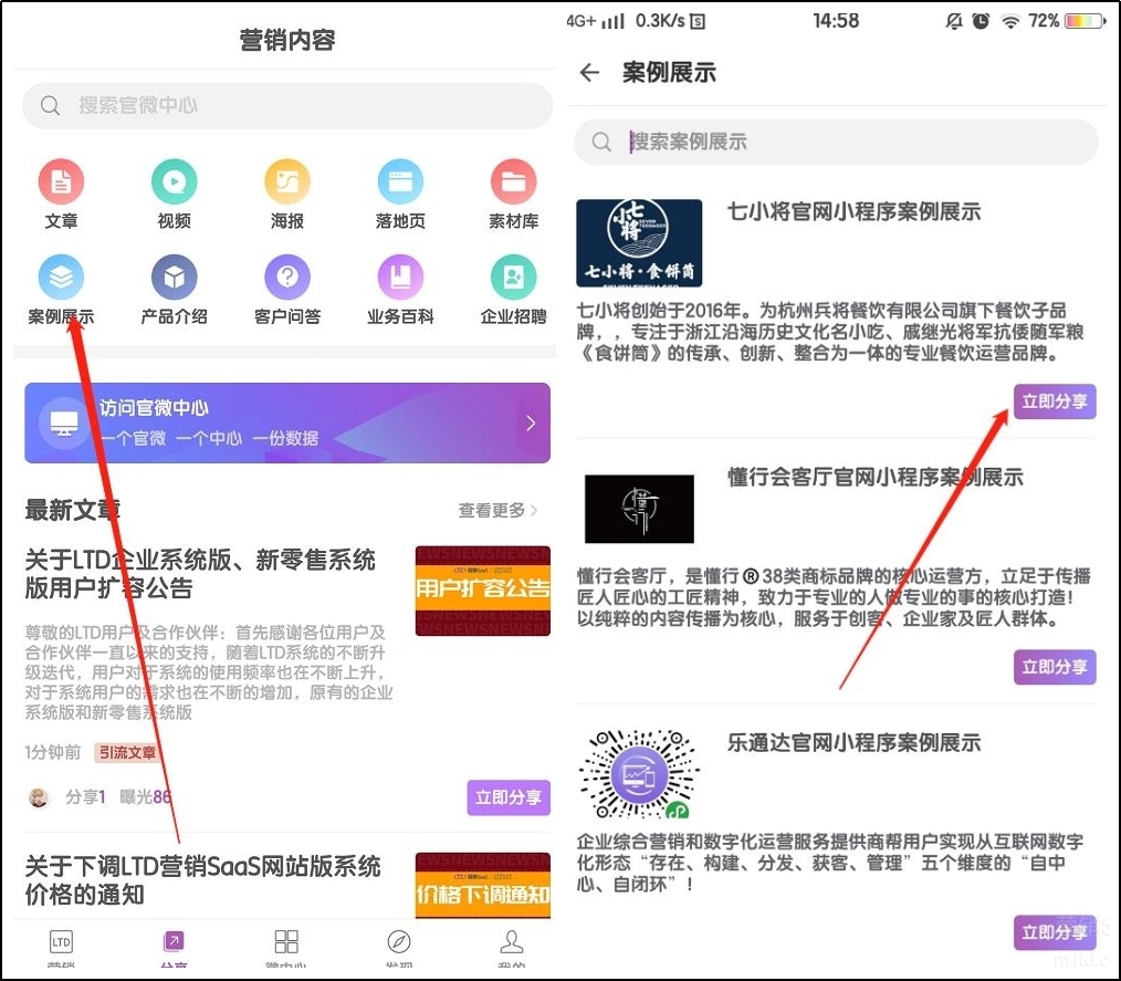 除了直接在官网中查看以外,客户案例同样可以直接用手机官微中心APP进行查看和分享。