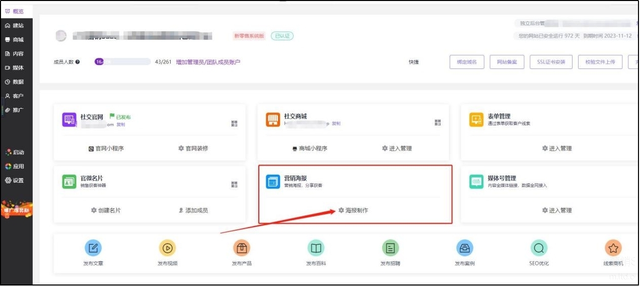 在官微中心中直接选择“营销海报-海报制作”即可开始上传图片作为宣传海报,在后续的宣传过程中也可以随时通过官微中心进行调取。