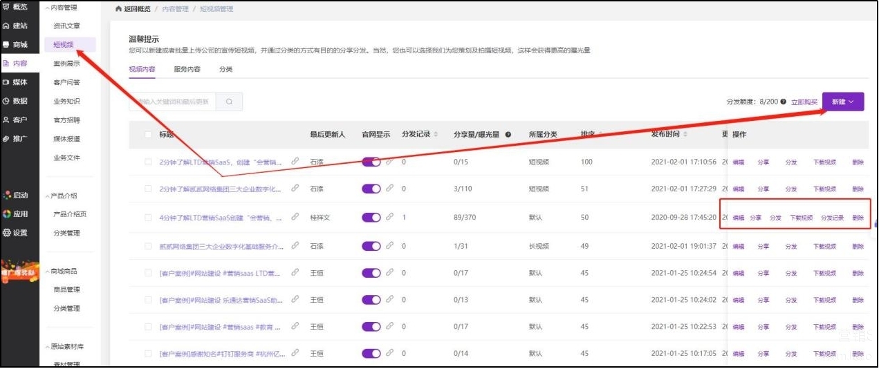 视频内容的上传十分便捷,选择“官微中心-内容-短视频”,选择新建视频内容即可;