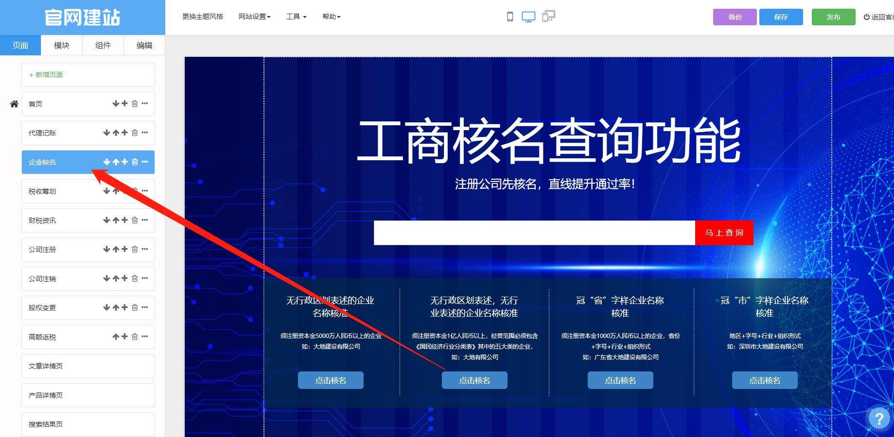 完成了表单创建后,我们再点开网站的编辑界面,选中你想要插入表单的具体栏目;