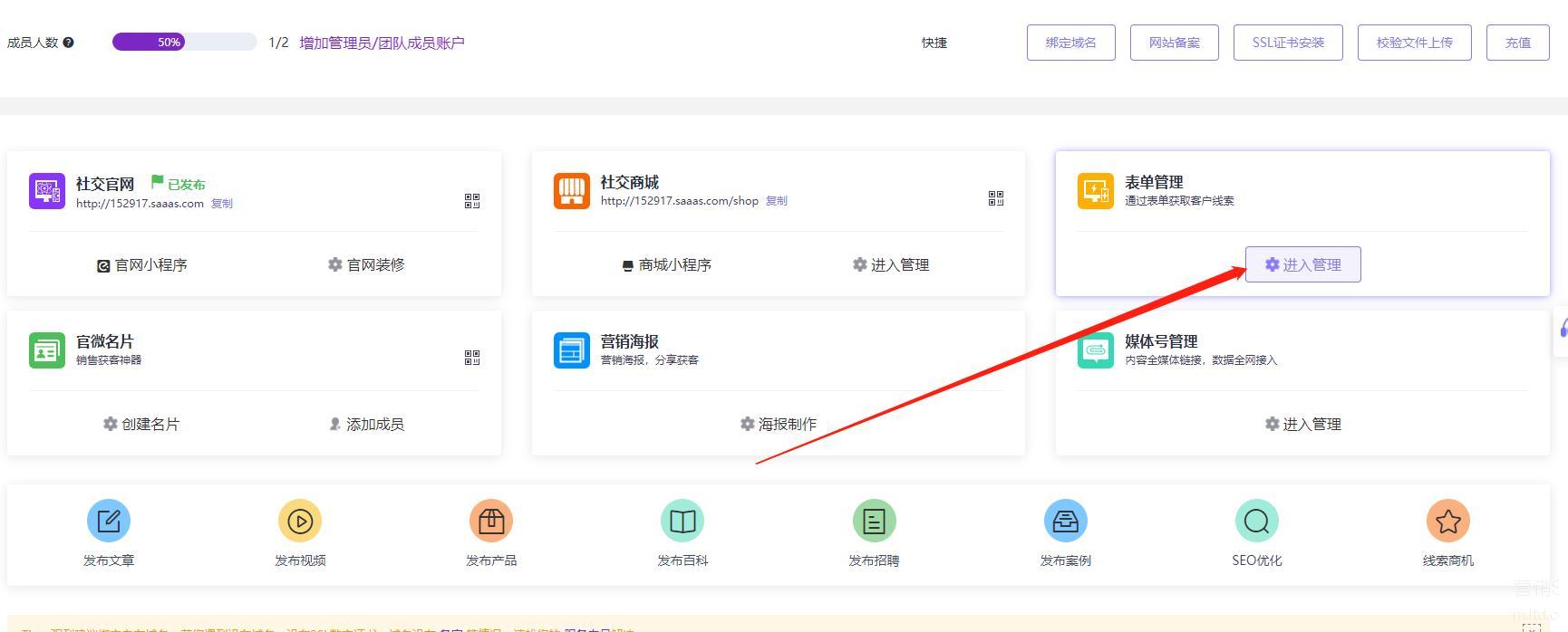 首先,我们要制作好所需的功能表单,点开LTD官微中心后台,选择功能表单;