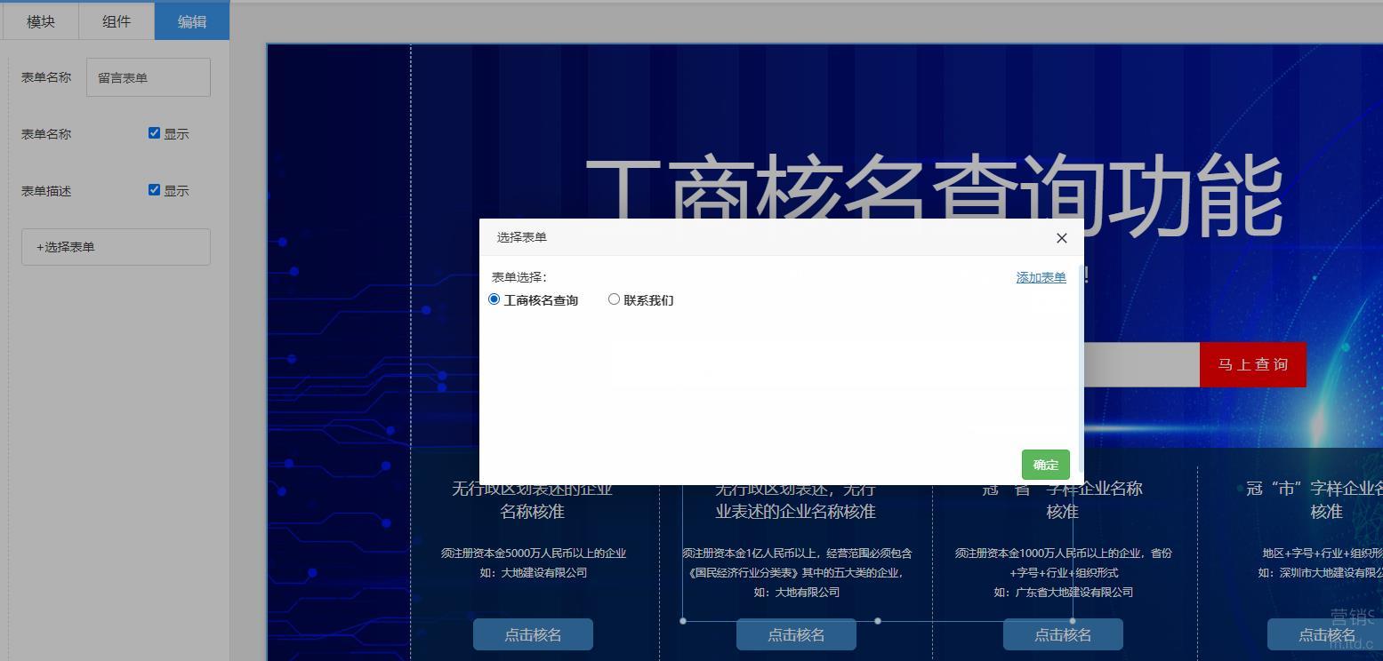 这时就会弹出我们已经编辑好的表单列表,选中所需要插入的表单,点击确认后,再进行一定的参数调整,最后选择保存修改即可。