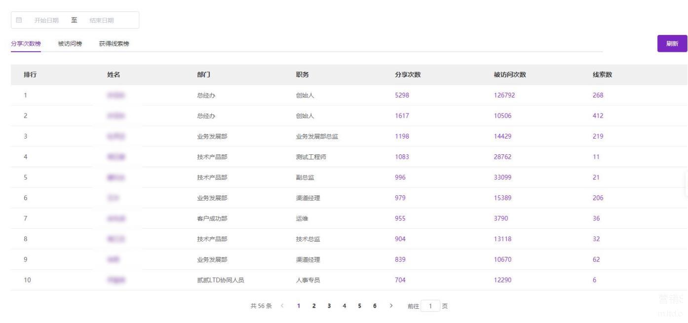 营销物料社交化分享,全员参与,营销中台记录统计分享次数,提高物料分享效率。