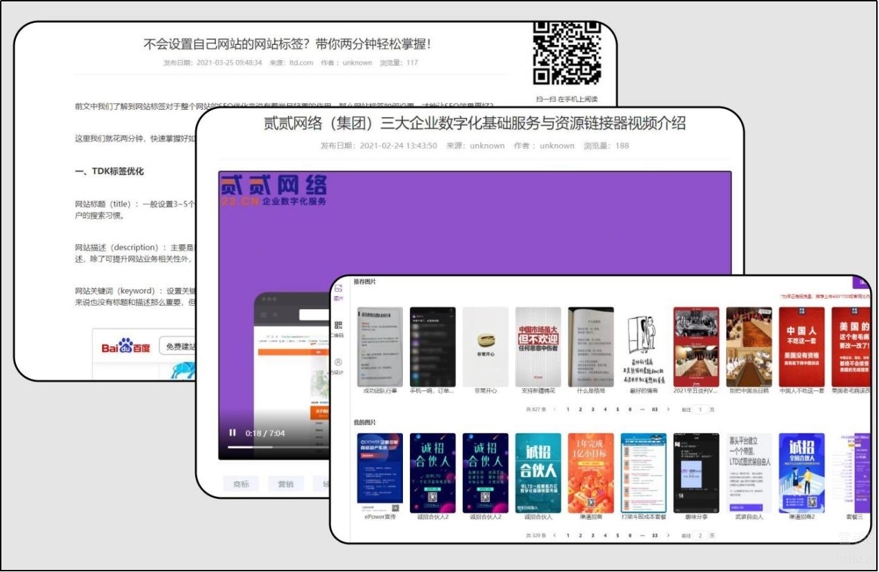 LTD营销中台支持文章、海报、视频多种物料形式,以适应企业面对的不同应用场景。