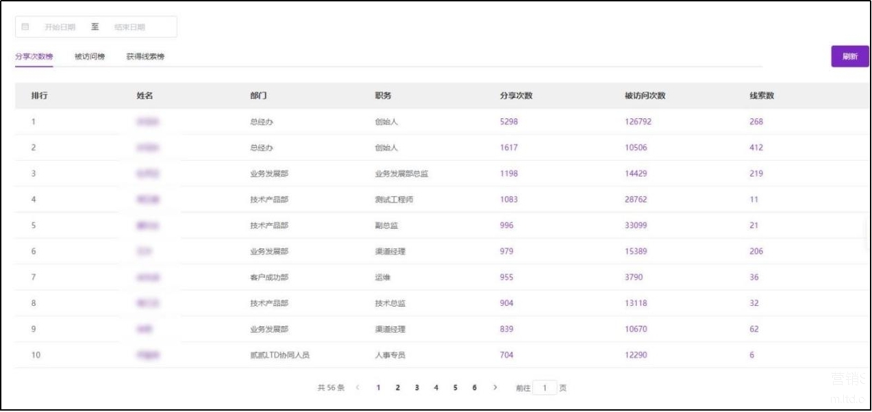 营销物料社交化分享,全员参与,营销中台记录统计分享次数,提高物料分享效率。