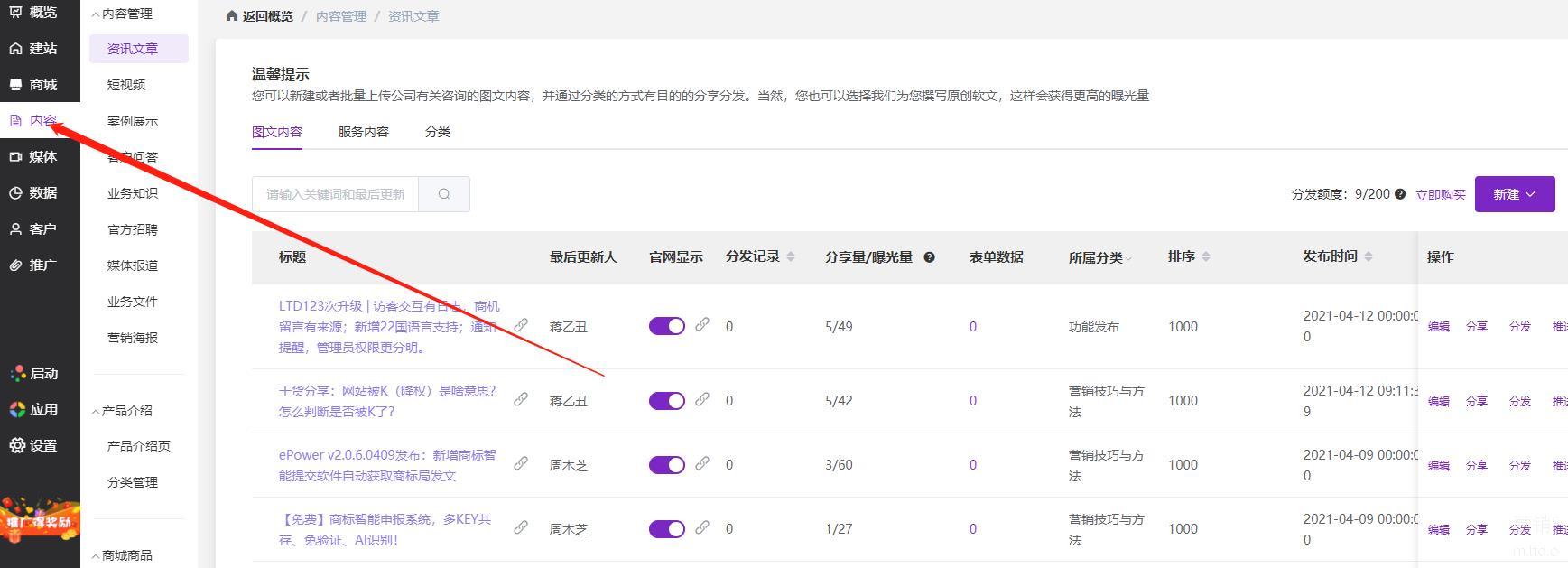 除开这些看得到的地方,还有一些看不到的地方才是企业做到数字化营销的关键之处,就比如说企业官网的管理后台。