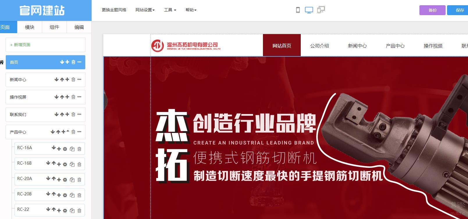 而杰拓机电有限公司通过使用LTD营销中台搭建了营销型官网,LTD官微中心支持拖拽式建站,海量网站主题随意更换,想要更换页面布局更简单,不懂代码也可以!