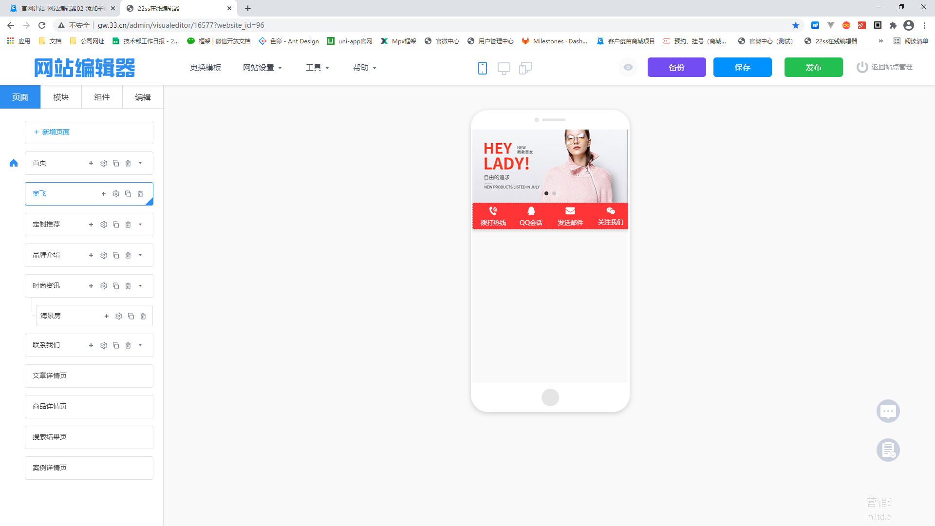 建站编辑器界面重构优化。