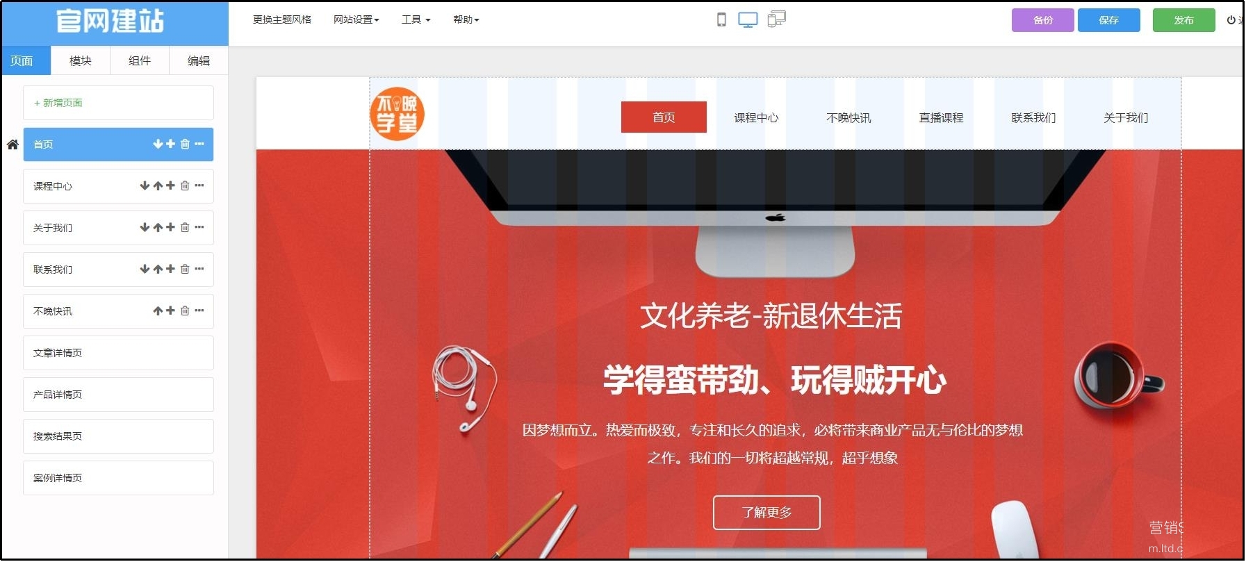 通过“会营销、能分享,用手机管理的网站”不晚学堂与访客、潜在客户之间搭建了更精准有效的沟通桥梁,也快速高效的客户关系网络。