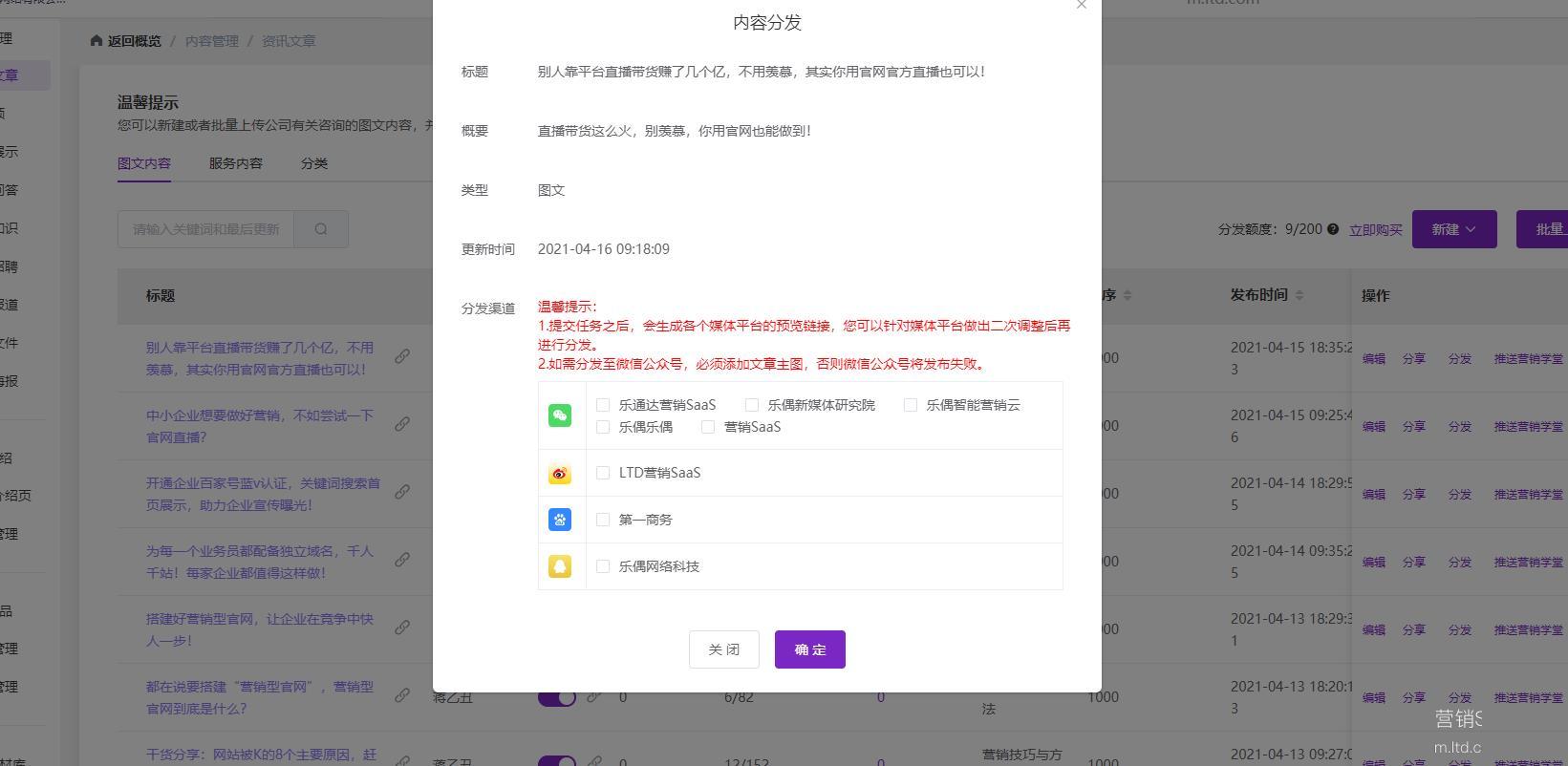 LTD营销中台官网建站采用“pc官网+移动H5+小程序”同时建站,一个站点,多个布局。