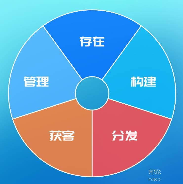 五维数字化运营体系:企业的数字化营销过程可分为“存在”——“构建”——“分发”——“获客”——“管理”五大部分,分别对应企业形成自身私域、构建内容、获得流量、产生线索以及数据管理,五大部分共同组成企业数字化转型的五维运营体系。
