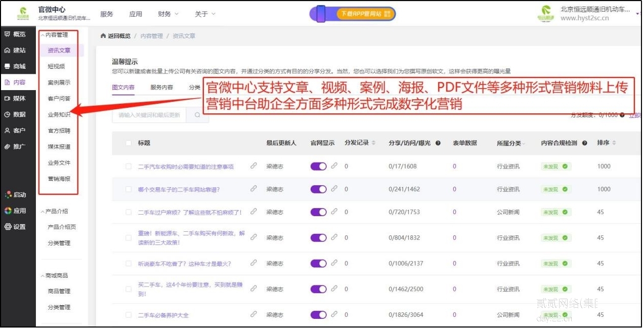 LTD官微中心后台支持各种形式营销物料上传,点击即可完成一键分发;通过多种形式的营销物料宣传,可以将企业产品和服务等信息更立体地展现在客户面前,更显专业!