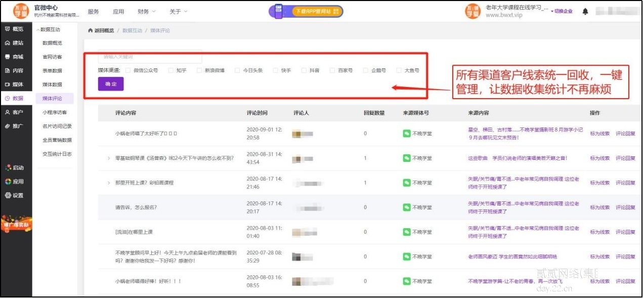 最后,官网所收集的各项数据应该集中统一管理管理,一方面数据管理能够更加合理,另一方面对于线索数据的利用也能更高效。