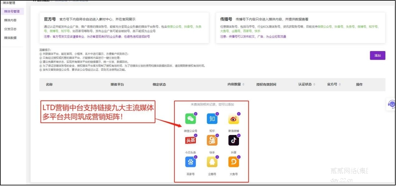 以上就是“生意进系统,客户找上门”攻略“三个动作”的第二步,完成媒体号的关联授权,为后续的营销物料一键分发打下基础,真正将生意内容与LTD营销中台结合起来,让官网变成营销平台,宣传推广更高效!
