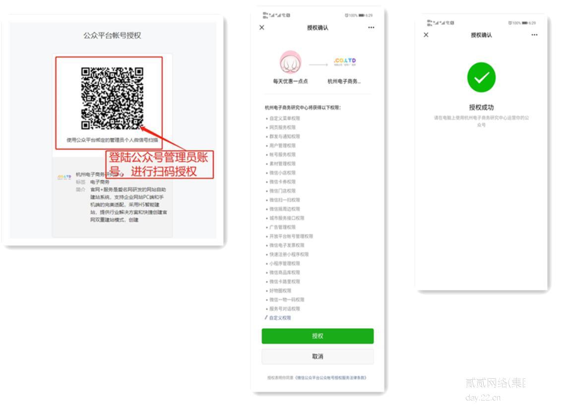 点击授权后会自动跳转至相应的扫码登录界面;扫描二维码登录后,即可选择授权;