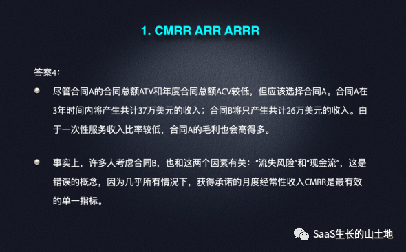 如果同时关注TCV(合同总额)和ACV(年度合同额),则可以避免将多年收入扭曲为第一年收入的虚荣指标的形成。
