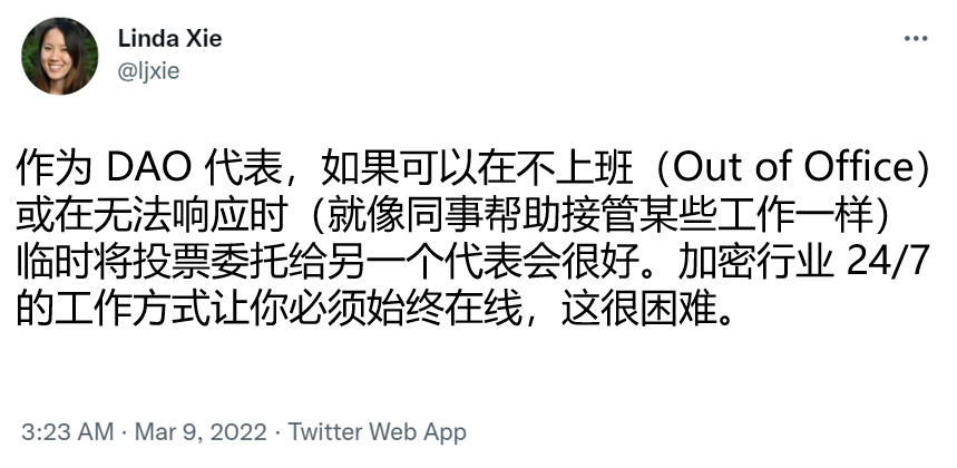 Linda Xie 在最近的一条推文中对作为个人代表所带来的压力做了最好的描述: