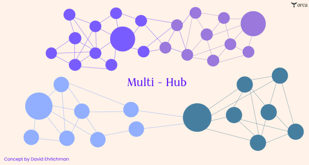 这些元治理网络,可能开始看起来像戴维·埃利希曼在他的书《有力网络》中所描述的“多节点”网络。戴维在他的书中描述了分布式枢纽网络的重要性:在这些网络中,信息在其中流动并做出决策。演化成“多节点”网络是必由之路,只有这样才能解锁网络作为一股强大变革力量的独特品质。”