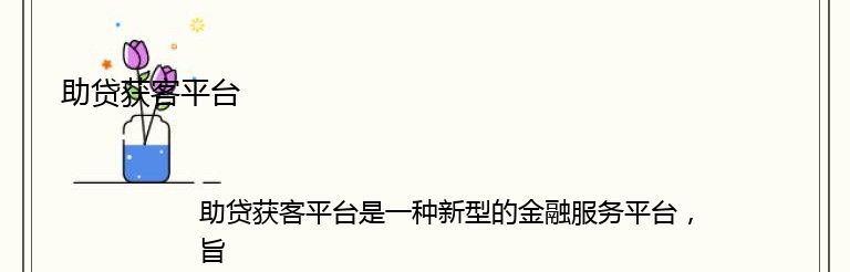 助贷获客平台是一种新型的金融服务平台,旨在为小微企业和个人提供快速、便捷的贷款服务。随着互联网的发展,越来越多的人开始意识到助贷获客平台的重要性。