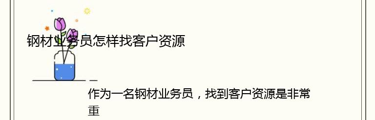 作为一名钢材业务员,找到客户资源是非常重要的。以下是一些方法,可以帮助您找到潜在客户: