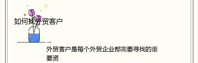 外贸客户是每个外贸企业都需要寻找的重要资源,但是如何找到合适的外贸客户却是一个不容易解决的问题。以下是一些方法和技巧,可以帮助您更好地找到外贸客户。
