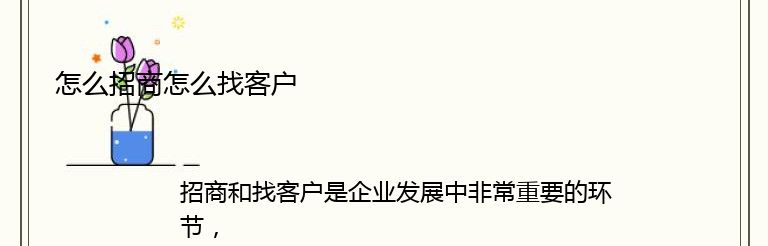 招商和找客户是企业发展中非常重要的环节,它们直接关系到企业的生存和发展。那么,怎么招商怎么找客户呢?