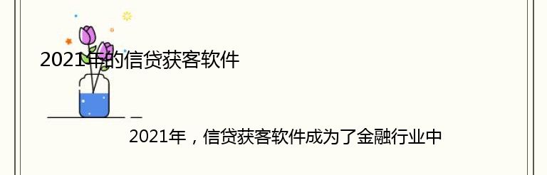 2021年,信贷获客软件成为了金融行业中不可或缺的一部分。随着互联网的普及和金融科技的发展,越来越多的金融机构开始采用信贷获客软件来提高客户获取效率和质量。