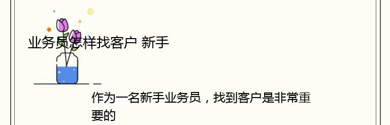 作为一名新手业务员,找到客户是非常重要的。以下是一些方法,可以帮助你找到潜在客户:
