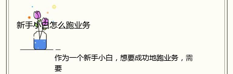 作为一个新手小白,想要成功地跑业务,需要掌握以下几个关键点:
