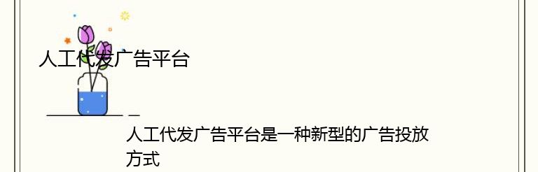 人工代发广告平台是一种新型的广告投放方式,它通过人工代发的方式,将广告信息传递给目标受众,从而实现广告宣传的目的。