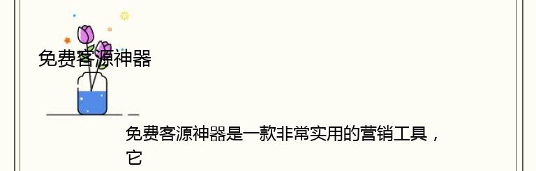 总之,免费客源神器是一款非常实用的营销工具,可以帮助企业快速获取大量的潜在客户,提高销售业绩。如果您正在寻找一款高效的营销工具,不妨试试免费客源神器。