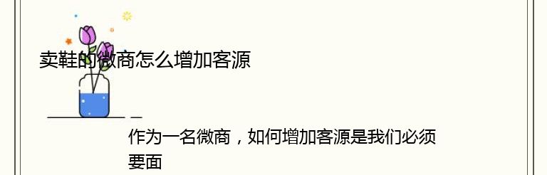 作为一名微商,如何增加客源是我们必须要面对的问题。特别是在卖鞋这个行业,竞争非常激烈,如何吸引更多的客户成为我们的粉丝,是我们需要思考的问题。